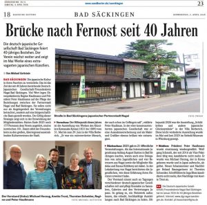 Berichte von im SÜDKURIER am 4. April 2026 und der BADISCHE ZEITUNG am 2. April 2026 von Michael Gottstein Die deutsch-japanische Gesellschaft Bad Säckingen feiert 40-jähriges Bestehen. Der Verein wächst weiter und zeigt im Mai Werke eines extravaganten japanischen Künstlers. Bad Säckingen Die japanische Kultur in ihren Facetten zu vermitteln: Das ist das Ziel der